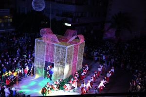 El evento, en su sexta edición, se realizó en la Plaza de España, lugar en el que se encuentra la decoración de Navidad principal de la localidad, que este año optan por luces y una bola en suspensión que iluminan toda la plaza, diversas figuras navideñas iluminadas a modo de photocall y una enorme caja de regalo en el centro, que se convierte en la figura protagonista de este año y que, además, puedes pasear dentro de ella.