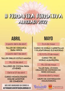 Tras el éxito de la pasada edición, donde cerca de 200 jóvenes de la localidad se vieron beneficiados de los cursos y talleres organizados en el municipio, desde la concejalía de Juventud del Ayuntamiento de Almoradí, dirigida por Kevin Cabrera, vuelven a apostar por la formación de los más jóvenes.
