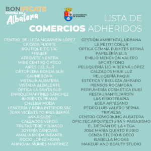 Todas las bases de la campaña “Abónate” se encuentran aquí: https://www.albatera.org/bono-comercio-albatera-2022/