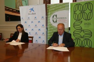 El Consorcio para el Desarrollo Económico de la Vega Baja trabajará junto a MicroBank, el Banco Social de CaixaBank, en el fomento del autoempleo y la actividad emprendedora en la comarca. El presidente de Convega y diputado de Desarrollo Económico, Sebastián Cañadas, y la directora Comercial Red Valencia Sur de CaixaBank, María Tomasa Rives, han firmado esta semana el acuerdo que regula esta colaboración que contempla una línea de financiación de un millón de euros para la concesión de microcréditos.