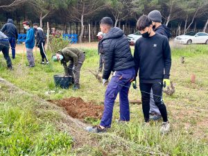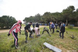 El concejal de Educación del Ayuntamiento de Torrevieja, Ricardo Recuero, junto con representantes de AGAMED, la asociación ARS CREATIO y alumnos de 16 a 18 años de Formación Profesional de Agrojardinería y Composiciones Florales del IES MARE NOSTRUM, han participado en el proyecto de recuperación patrimonial de las viñas en La Mata, que se ha desarrollado esta mañana en el Parque Natural de La Mata frente al cementerio de esta pedanía torrevejense.