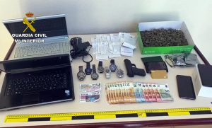 En la fase de explotación de la operación, llevada a cabo en el municipio pachequero, los guardias civiles se han incautado de más de 100 gramos de cogollos de marihuana dispuestos para su inminente distribución, efectivo, teléfonos móviles, relojes de gama alta, dispositivos tecnológicos y documentación relacionada con la actividad delictiva ahora esclarecida.