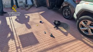 En el registro de Fortuna se incautaron armas, munición y otros efectos relacionados con la actividad delictiva ahora esclarecida. Algunas de las armas se encontraban municionadas, con ‘bala en recámara’ y dispuestas para disparar en cualquier momento. En total se han incautado tres pistolas, un subfusil con silenciador, dos armas largas, munición metálica del mismo calibre que las armas incautadas, armas blancas y objetos utilizados en los atracos, como bridas, guantes, etc.