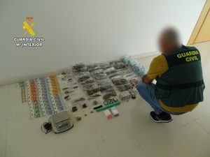 En dichas actuaciones, se han intervenido 1 kilogramo de cogollos de marihuana, 5 gramos de cocaína, 65 cigarros porros preparados para su venta, basculas de precisión, material para su venta y distribución y 810 euros en efectivo.