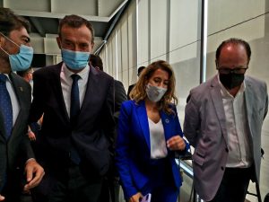 El alcalde de Orihuela, Emilio Bascuñana, acompañado del concejal de Desarrollo Rural, Víctor Valverde, ha asistido esta mañana a la presentación del primer programa de ayudas para municipios con los fondos europeos del Mecanismo de Recuperación y Resiliencia, que ha corrido a cargo de la ministra de Transportes, Movilidad y Agenda Urbana, Raquel Sánchez.