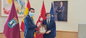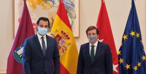 El alcalde de Torrevieja, Eduardo Dolón, se ha reunido en la mañana de hoy en el Palacio de Comunicaciones (Palacio de Cibeles, Ayuntamiento de Madrid), con el alcalde de Madrid, José Luis Martínez-Almeida, y la concejal de Turismo, Almudena Maíllo, en donde el primer edil madrileño ha querido agradecer a Eduardo Dolón la buena predisposición de la ciudad de Torrevieja tras la histórica nevada (denominada Filomena) que sufrió ciudad de Madrid a principios de enero de 2021.