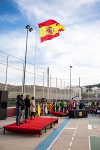 Las banderas de las diferentes autonomías, regaladas al colegio por sus presidentes, fueron entrando en el patio del centro educativo, para finalizar la bandera de España que fue izada por la vicepresidenta de la diputación.