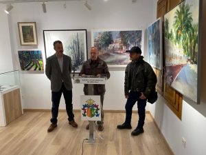 El centro de interpretación de El Palmeral acoge, desde hoy y hasta el mes de marzo, una muestra con las 20 obras finalistas del I Concurso Internacional de Pintura “Palmeral de Orihuela”. El concejal de Medio Ambiente, Guillermo Cánovas, ha inaugurado la muestra junto a Daniel Puchol, director técnico de Actúa, empresa encargada del mantenimiento del paraje, y de Juan José Pérez, director de la Escuela de Arte y Superior de Diseño de Orihuela (Easdo). “Tenemos las suerte de vivir en un municipio con un patrimonio histórico y natural extraordinario”, ha señalado el concejal de Medio Ambiente, quien ha considerado que “acciones como esta son formas de potenciar su valor a través del arte”. Así, ha recordado que se presentaron más de 40 artistas al concurso, cuyo primer premio recayó sobre Tomás Ibáñez; el segundo, sobre Juan Gallego y el tercero, en los participantes Fuensanta del Río y Raúl Ibáñez. Además, Cánovas ha avanzado que se celebrará un segunda edición de este concurso, que en su primera edición reunió a artistas procedentes de distintos puntos de la Comunidad Valenciana, de la Región de Murcia, Andalucía y Castilla La Mancha. Finalmente, ha informado de que las obras expuestas están a la venta y ha agradecido a Actúa y a la Easdo su implicación en el concurso.