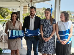 La consellera de Transición Ecológica, Mireia Mollà, junto a la alcaldesa de Orihuela, Carolina Gracia, y la vicepresidenta de Adeac, Virginia Yuste, ha hecho entrega de los 158 distintivos que reconocen la calidad y los servicios de 139 playas y 19 puertos deportivos correspondientes a 45 municipios a lo largo del conjunto del territorio.