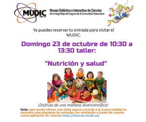 Igualmente, con motivo del Día Internacional de la Superviviencia Infantil, se celebrará el domingo 23 de octubre de 10:30 a 13:30 en el MUDIC, el taller ‘Nutrición y Salud’, donde se trabajará en el etiquetado nutricional y la presencia de azúcares, vitamina C y almidón en los alimentos. Durante la actividad se verán ejemplos prácticos y experiencias sencillas de laboratorio en el que se determinará la presencia de estas sustancias en los alimentos.