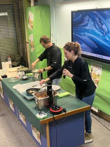Participaron el cocinero Trinitario Quinto Berna chef de restaurante “Handry_By_tario” de Albatera y la cocinera de las Salesas Clara, cada uno de ellos con una receta sobre la alcachofa. Los participantes degustaron un almuerzo ecológico y al finalizar un aperitivo especial. Hay que destacar que se realizaron tallares de cocina para los alumnos y contaron con la visita de la mascota de la alcachofa.