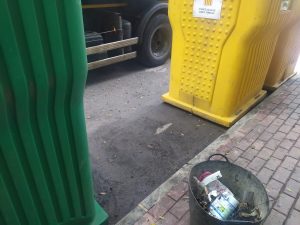 Se están limpiando por debajo los contenedores selectivos de recogida de residuos como compromiso de la nueva empresa, mejorando así mucho más la limpieza del municipio.