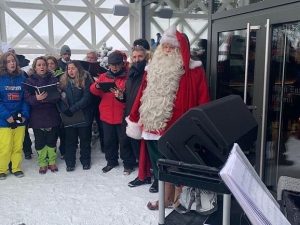 El coro oriolano visitó el poblado de Santa Klaus y fue recibido por el propio Papá Noel, a quien tuvieron el privilegio de cantarle.