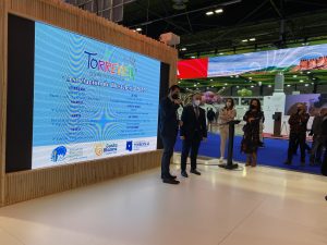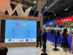 El alcalde de Torrevieja, Eduardo Dolón, la concejal de Turismo, Rosario Martínez, acompañados del presidente de la Asociación de Empresas de Hostelería de Torrevieja y Comarca, José Ignacio Pastor, presentaron en el día de ayer el calendario de Hostelería de Torrevieja Gastronómica 2022 y las jornadas de turismo gastronómico “PescaTurismo”, en la el video wall del stand del Patronato de Turismo Costa Blanca en la Feria Internacional del Turismo de Madrid (FITUR).
