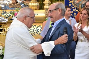 La ofrenda de flores a la Virgen del Rosario abrió este domingo las fiestas en honor a la patrona de Rojales. Asociaciones, entidades de todo tipo y ciudadanos de forma particular ofrendaron ramos de flores y alimentos no perecederos ante la imagen de la virgen situada a las puertas del templo parroquial. Todo ello acompañado por los sonidos de la dulzaina y el tamboril, y de las bandas de música La Lira y Santa Cecilia. El evento tuvo un momento muy emotivo cuando el párroco, José Rives Mirete, se dirigió a los presentes con su voz entrecortada al ser uno de los últimos actos que presidirá en la localidad y último lugar donde ejercerá como sacerdote. La corporación municipal presidida por el alcalde, Antonio Pérez, también estuvo presente en la ofrenda así como las reinas de las fiestas, según informa el concejal de Fiestas, Jesús Martínez.