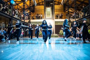 Los alumnos de sexto fueron los encargados de dar, movimiento a la sinfonía, bajo la dirección de Pascual del Bas, luciendo un exquisito maquillaje de Carmen. La sinfonía es una obra de Enrique Lidón y pone en valor los inicios de los movimientos en la danza y como engancha para que otros se sumen a este mosaico multicolor de personas que tienen ganas de emocionarse bailando.