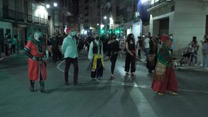 El desfile que contó con bandas de música y representantes de todas las comparsas oriolanas, a las que se unieron las asociaciones de fiestas de Albatera y Callosa de Segura, partió de la plaza Ramón Sijé hacia el auditorio de La Lonja, donde se presentó publicamente el diorama ‘Orihuela Musulmana’ que recrea los detalles de la ciudad en la época medival y que a partir de ahora se puede visitar en el Museo de la Recoquista.