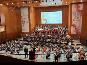 Emotivo y espectacular concierto celebrado en la tarde de ayer martes, 23 de noviembre, en homenaje al general de Brigada Músico Francisco Grau Vegara, en el Teatro Monumental de Madrid. El acto estuvo presidido por la Reina de España Doña Sofía, a la que le unía una gran amistad con Grau Vegara, y que estuvo acompañada por su viuda, Gloria Ramírez Huete, y por el Jefe del Estado Mayor de la Defensa (JEMAD), Teodoro López Calderón.