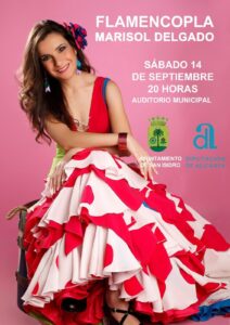 La actriz y cantante de copla afincada en San Isidro, Marisol Delgado, actuará este próximo sábado 14 de septiembre a las 20:00 horas en el Auditorio Municipal de la localidad en la que reside, en un acto titulado “Flamencopla”, que incluirá un amplio repertorio de copla y flamenco.