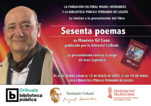 Mauricio Gil Cano presenta en Orihuela el 12 de marzo su libro ‘Sesenta Poemas’