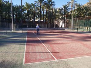 También en las dos pistas de tenis existentes el pavimento está muy deteriorado por lo que se sanearán y sellarán las grietas existentes. Además, se realizará una limpieza previa de la superficie soporte y otra final cuando esté acabada.