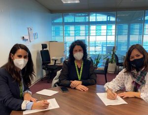 Hasta el aeropuerto se ha desplazado hoy la Concejala de Cultura,Mar Ezcurra, para la firma del convenio con Aena a través de la Jefa de Gabinete de Dirección del Aeropuerto, Soraya Pina Ponce.