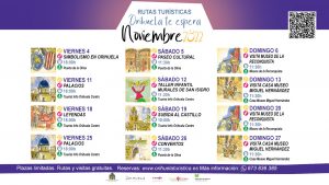 Asimismo, la programación turística de noviembre retoma dos rutas tras la bajada de las temperaturas, la senderista ‘Subida al Castillo’ que partirá desde la puerta de la oficina de turismo de Orihuela Centro hasta llegar al castillo; un recorrido que se aconseja realizar con ropa y calzado cómodo además de llevar agua. Y la ruta ‘Conventos’ que recorrerá los principales edificios conventuales de la ciudad y en la que los visitantes podrán adquirir los sabrosos dulces conventuales.