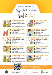Hoy comienzan las rutas turísticas de julio con la ruta monumental, que da a conocer los principales monumentos históricos de la ciudad, que incluye una degustación de productos de la Vega Baja y actuación en directo de un espectáculo flamenco a cargo de una compañía oriolana. “Este mes hemos puesto en práctica la línea de actuación que queremos llevar a partir de ahora en turismo, es decir, la de implicar al comercio, empresas y autónomos con el turismo y así que las visitas a nuestra ciudad reviertan en diferentes sectores económicos”, ha afirmado María García, concejala de Turismo.
