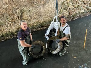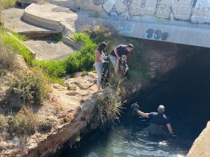 Los concejales Federico Alarcón y Antonio Vidal, con traje de neopreno, estuvieron limpiando el interior del canal, recogiendo residuos tales como, colchones, ruedas de coche, carros de la compra y un largo etcétera, además de los encontrados en la zona, por nuestros jóvenes voluntarios, como una televisión, una puerta, cajones o botellas.