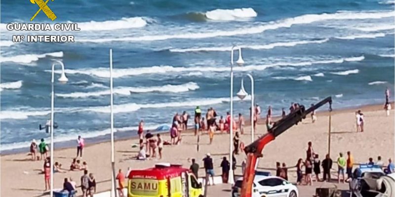 La Guardia Civil de Alicante acudió ayer a un aviso por tres personas en peligro en la Playa Centro de Guardamar del Segura. Una mujer se había metido en el agua para ayudar a salir a su hijo pequeño sin éxito. Un testigo que se lanzó a ayudarlos, fue arrastrado también por las olas. Afortunadamente, el aviso inmediato dado por los testigos y la pronta respuesta de los Cuerpos de Seguridad y Emergencia permitió que la situación se resolviera con éxito.