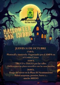 Halloween comenzará en San Isidro este jueves 31 de octubre a las 17:00 horas, con una actividad organizada por el AMPA en el Centro Cívico, que contará con photocall y merienda para los participantes.