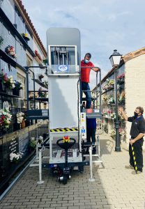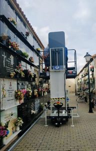 La concejal delegada de Cementerios, Sandra Sánchez, ha mostrado su satisfacción por haber podido adquirir esta plataforma, muy necesaria en el camposanto torrevejense, dado que hasta ahora no se disponía de medios auxiliares para permitir la elevación de féretros en niveles 4 y 5 y trabajos de