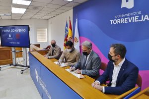 A la firma del convenio han asistido el concejal de Educación del Ayuntamiento de Torrevieja, Ricardo Recuero, el vicerrector de Estudiantes y Coordinación, José Juan López Espín, y la vicerrectora adjunta de Comunicación y Coordinación, Alicia de Lara González.
