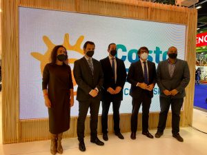 El alcalde de Torrevieja, Eduardo Dolón, acompañado de la concejal de Turismo, Rosario Martínez, han presentado en el video wall del stand del Patronato de Turismo Costa Blanca en FITUR, las líneas generales del Plan de Destino Turístico Inteligente (DTI), en la que han estado presentes el diputado provincial, Juan de Dios Navarro, así como los concejales de Turismo de Alcoy, Lorena Zamorano, la concejal de Turismo de Altea, Xelo González, y el concejal de Turismo de Benissa, Jorge Ivars.