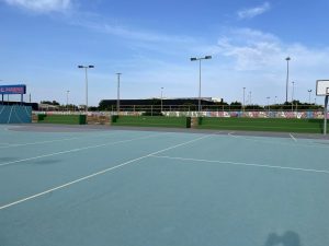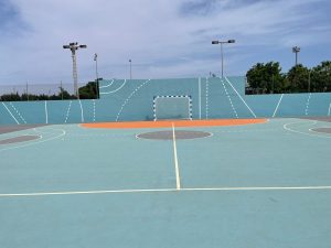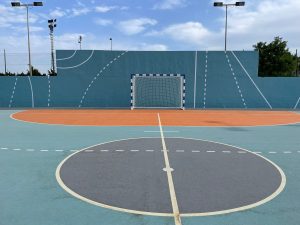 La concejal de Deportes del Ayuntamiento de Torrevieja, Diana Box Alonso, informa de los trabajos que se están realizando para la mejora y acondicionamiento de las instalaciones de la Ciudad Deportiva. Se trata de la pista exterior denominadamente popularmente “La Mosquitera”, en la cual se ha llevado a cabo una reparación integral que ha consistido en una nueva pavimentación, ampliación de muros parabalones de los fondos, reparación de barandillas de las gradas y las mallas metálicas de las partes traseras, renovación de canastas de baloncesto y porterías de balonmano/fútbol sala y nuevo pintado de las gradas y del marcaje de pista.