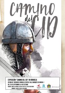 Esta exposición es una muestra divulgativa sobre el Camino del Cid: contiene información sobre el Cid histórico y mítico, el Cantar de Mío Cid, las características del recorrido así como abundantes mapas de las diferentes rutas y de sus principales atractivos turísticos. Orihuela, dentro de este histórico camino, forma parte de la etapa final de la ruta “La Defensa del Sur”. Este recorrido, a diferencia de los anteriores, la historia predomina sobre la literatura. El poeta que escribió El Cantar no encontró una potente trama argumental al unir en uno solo los dos destierros. El segundo de ellos mucho más duro y decisivo estando el Cid en Alicante (1088). Por lo tanto, esta ruta recupera ese episodio histórico y algunos otros relacionados con la defensa del peligro almorávide que procedía del Sur. En cuanto a la etapa final que Orihuela tiene el honor de acoger, destacamos que la relación del héroe con Orihuela se remonta al año 1090 cuando tras derrotar al conde catalán Ramón Berenguer II en la batalla de Tévar, el Cid fijó un amplio protectorado sobre los reinos islámicos de Al Hayib, que englobaba los territorios de Lérida, Tortosa y Denia. Un año más tarde, en 1091, este protectorado se extendió hasta Orihuela, según Ben Alcama.