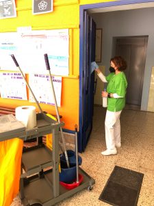 El servicio ha comenzado con la limpieza, desinfección y puesta a punto en los colegios de Rafael Altamira, La Paz, Primo de Rivera, San Roque y el Colegio Rural Agrupado Azahar. El servicio se realiza tanto en turnos de mañana como en turnos de tarde.